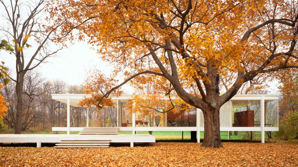 Some of the examples you can find in this style include the Farnsworth House in Illinois, the Case Study Houses in Los Angeles (like the Eames House), and the TWA Flight Center in New York.