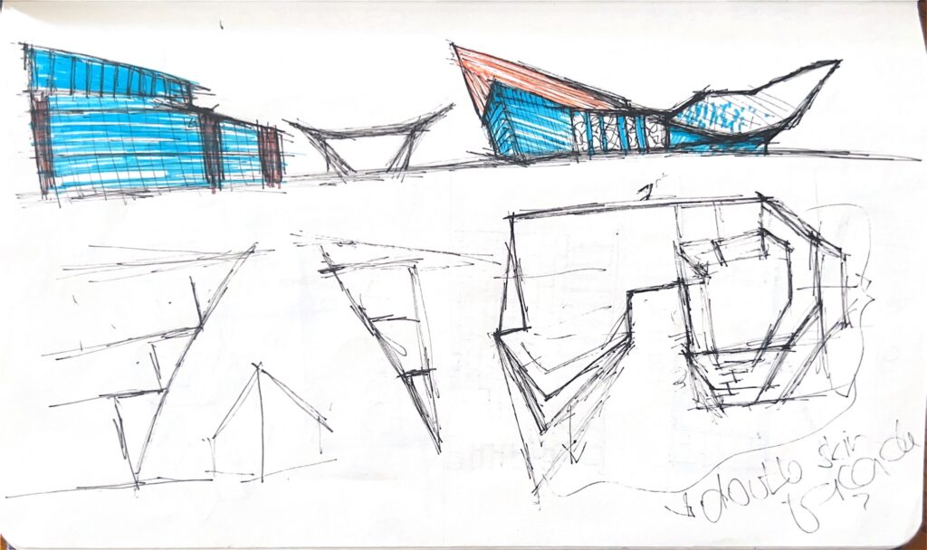 Make conceptual models (the roughest you can), try to sketch in perspectives and axonometry, and think of life in the spaces you’re designing because that will give you a narrative/story that you want your design to tell, and that will shape the experiences of your project’s users.